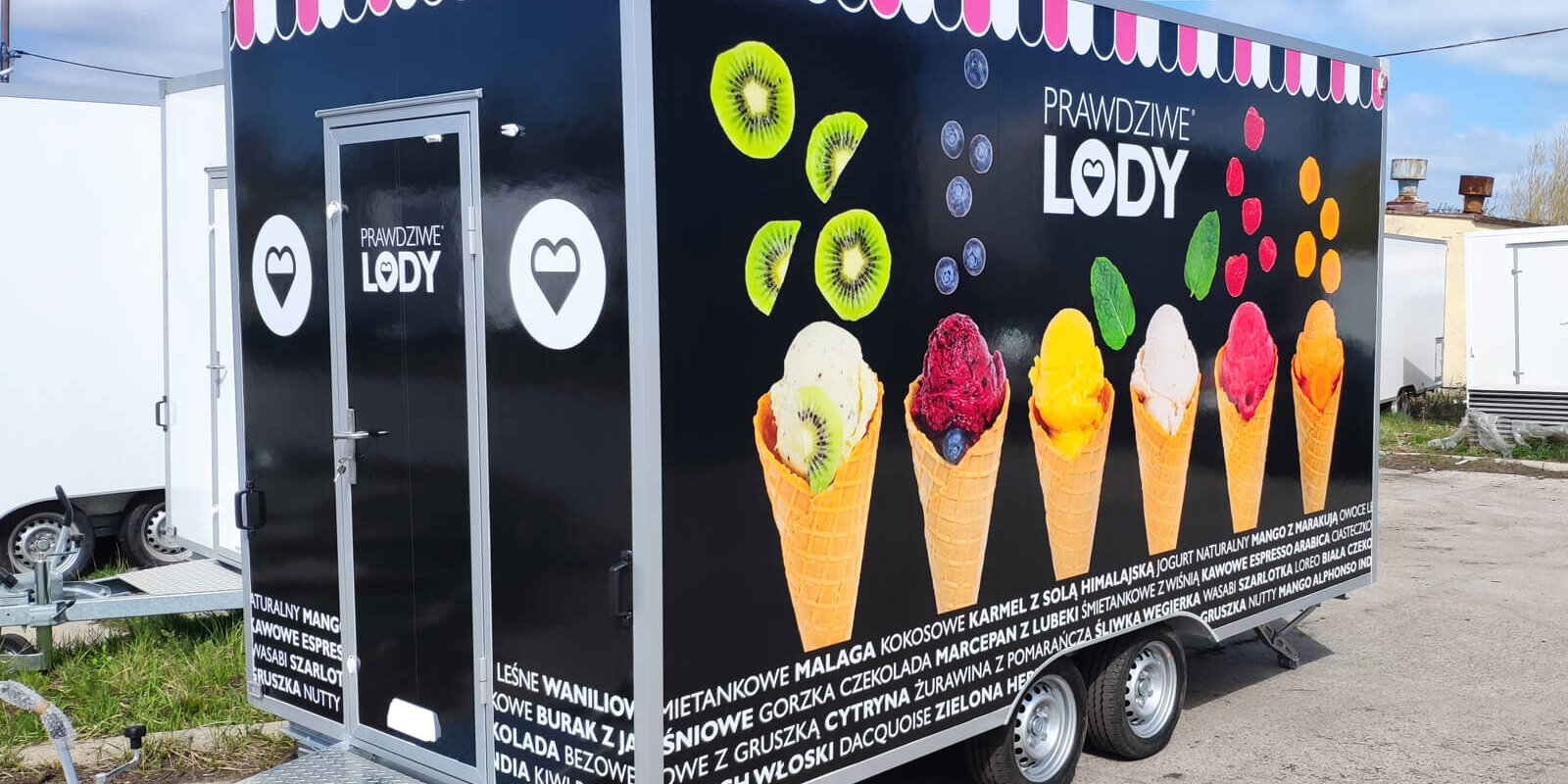 Oklejenie przyczepy gastronomicznej dla firmy Prawdziwe Lody. Project navigationPoprzedniePrevious project:Wyklejenie przyczepy gastronomicznejNastępneNext project:Wyklejenie przyczepy gastronomicznej
